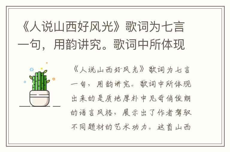 《人说山西好风光》由张棣昌谱曲、乔羽作词,作为1959年上映的电影《我们村里的年轻人》的插曲,由郭兰英首唱,随后红遍大江南北 -1-5-9。