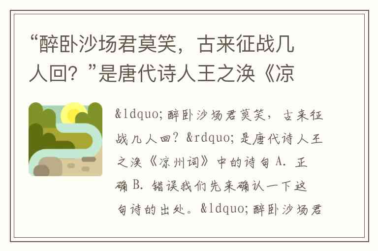 “醉卧沙场君莫笑,古来征战几人回?”是唐代诗人王之涣《凉州词》中的诗句 A. 正确 B. 错误