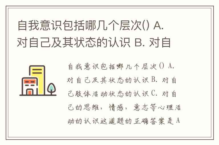 自我意识包括哪几个层次() A. 对自己及其状态的认识 B. 对自己肢体活动状态的认识 C. 对自己的思维,情感,意志等心理活动的认识