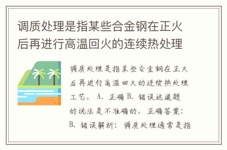 结论: 调质是“淬火+高温回火”,题干将其描述为“正火+高温回火”是错误的。
