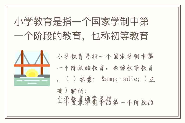 小学教育是指一个国家学制中第一个阶段的教育,也称初等教育。( )