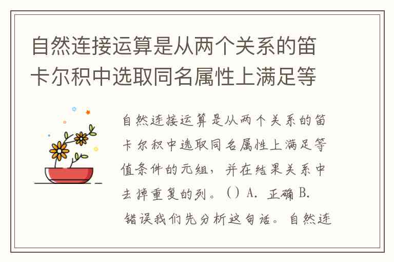 自然连接运算是从两个关系的笛卡尔积中选取同名属性上满足等值条件的元组,并在结果关系中去掉重复的列。( ) A. 正确 B. 错误