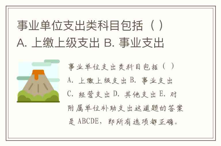 事业单位支出类科目包括( ) A. 上缴上级支出 B. 事业支出 C. 经营支出 D. 其他支出 E. 对附属单位补助支出