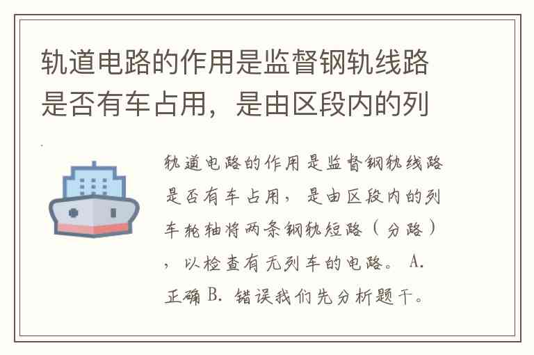题干中说:轨道电路的作用是监督钢轨线路是否有车占用,并且由区段内的列车轮轴将两条钢轨短路(分路),来检查有无列车。