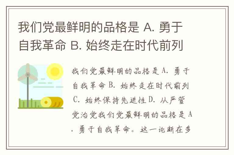 我们党最鲜明的品格是 A. 勇于自我革命 B. 始终走在时代前列 C. 始终保持先进性 D. 从严管党治党