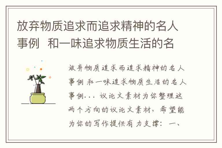 放弃物质追求而追求精神的名人事例 和一味追求物质生活的名人事例... 议论文素材