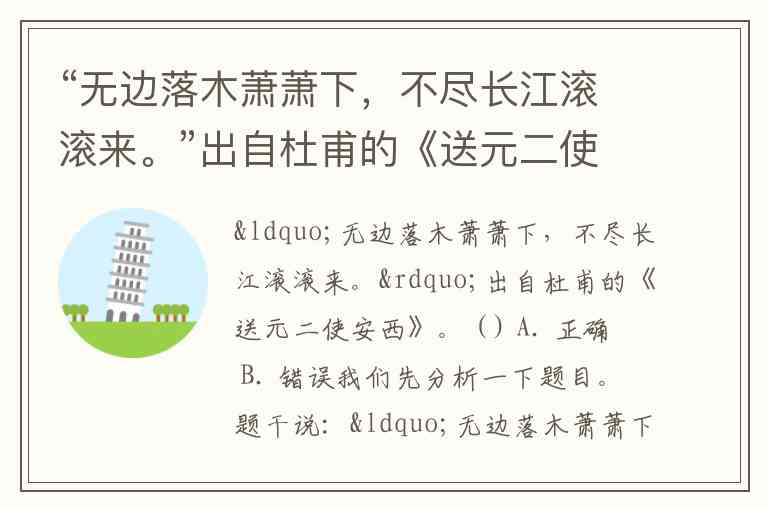 “无边落木萧萧下,不尽长江滚滚来。”出自杜甫的《送元二使安西》。 ( ) A. 正确 B. 错误