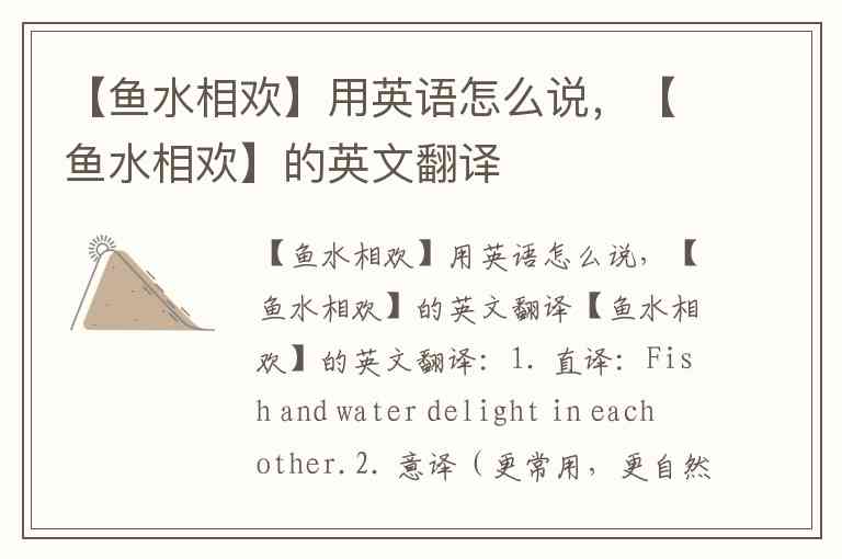 【鱼水相欢】用英语怎么说,【鱼水相欢】的英文翻译