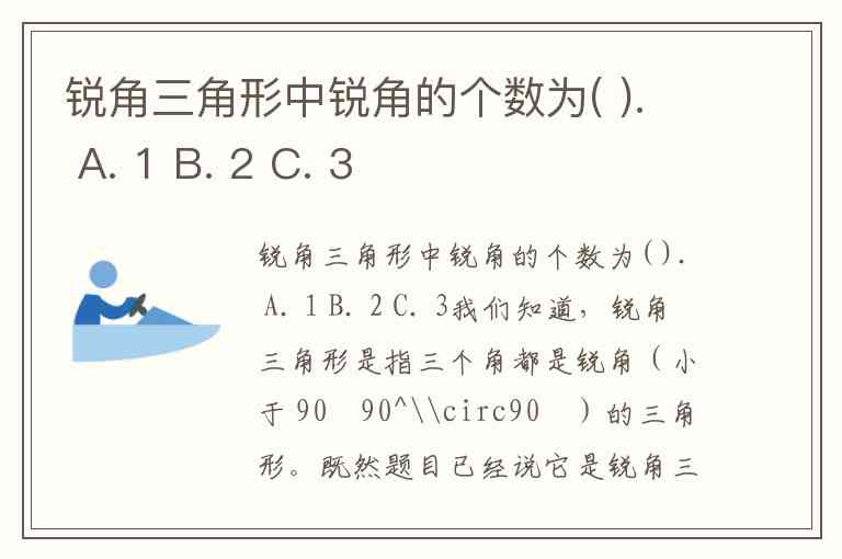 锐角三角形中锐角的个数为( ). A. 1 B. 2 C. 3