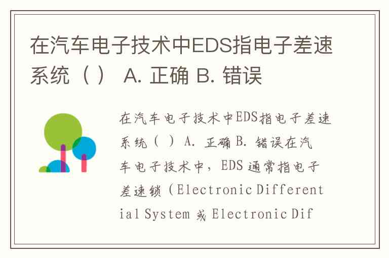 在汽车电子技术中EDS指电子差速系统( ) A. 正确 B. 错误