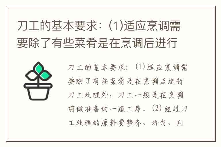 这些是“刀工的基本要求”,前面四项已经列出,第五项应当是与刀工相关的、前面没有涵盖的重要内容,比如卫生、营养、操作姿势、安全等。