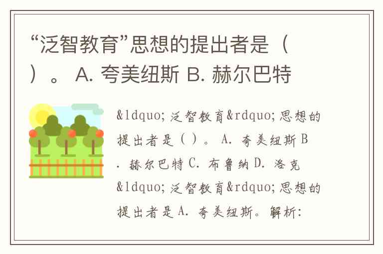 “泛智教育”思想的提出者是()。 A. 夸美纽斯 B. 赫尔巴特 C. 布鲁纳 D. 洛克