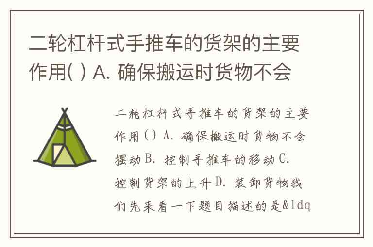 二轮杠杆式手推车的货架的主要作用( ) A. 确保搬运时货物不会摆动 B. 控制手推车的移动 C. 控制货架的上升 D. 装卸货物