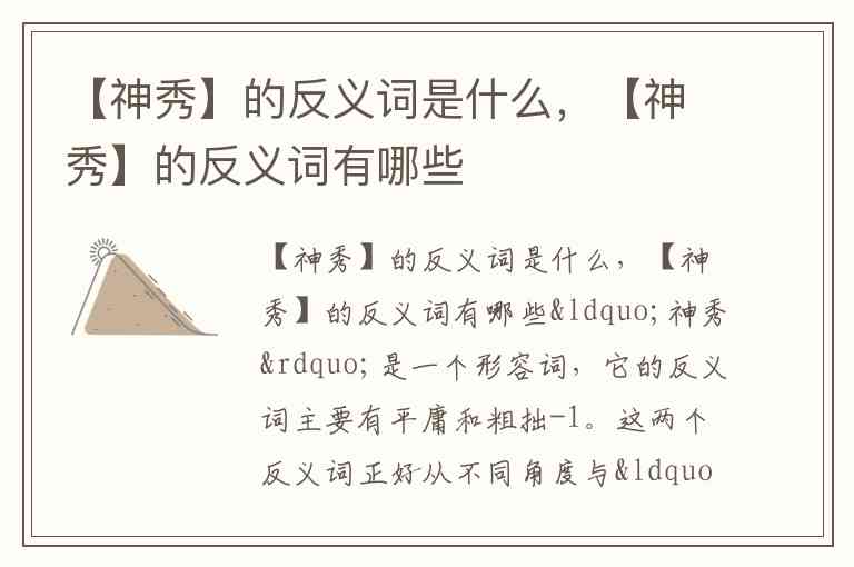【神秀】的反义词是什么,【神秀】的反义词有哪些