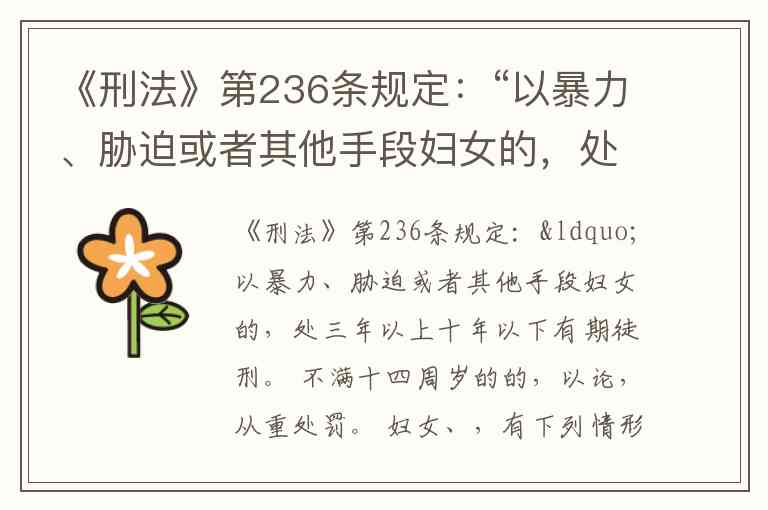 暴力:指对妇女的身体实行打击或强制,如殴打、捆绑、掐脖子等,使妇女不能反抗。