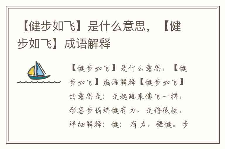 【健步如飞】的意思是:走起路来像飞一样,形容步伐矫健有力,走得很快。