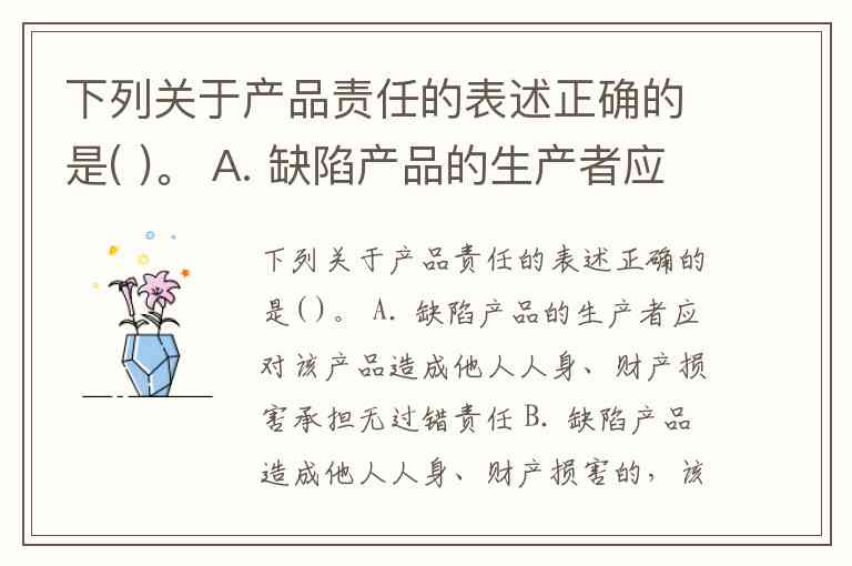 表述内容:“缺陷产品的生产者应对该产品造成他人人身、财产损害承担无过错责任”。
