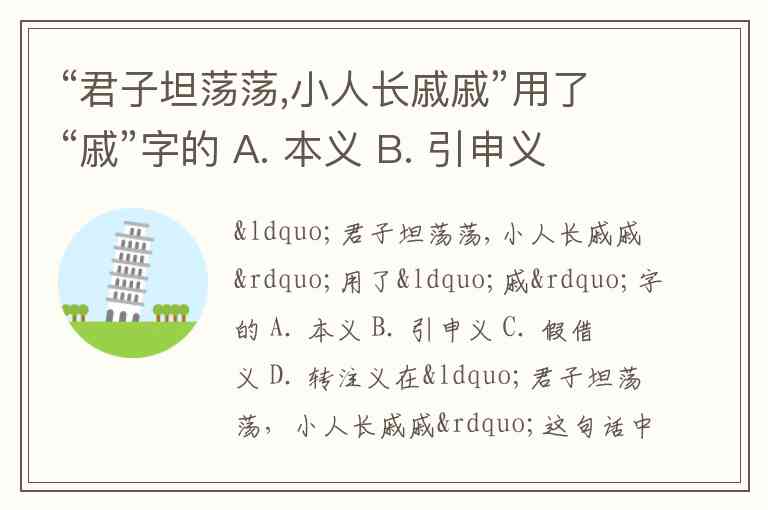 在“君子坦荡荡,小人长戚戚”这句话中,“戚”字使用的是它的 C. 假借义。