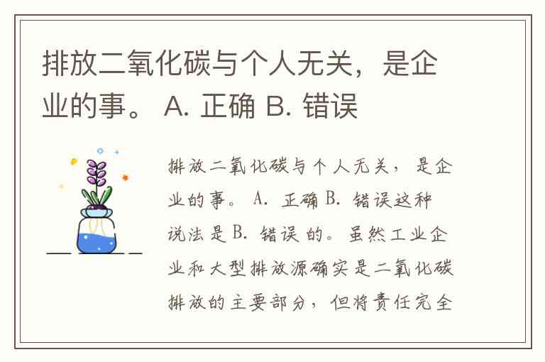 排放二氧化碳与个人无关,是企业的事。 A. 正确 B. 错误