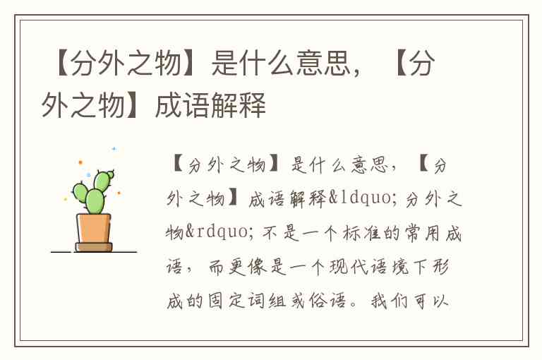“分外之物”不是一个标准的常用成语,而更像是一个现代语境下形成的固定词组或俗语。我们可以从字面和实际使用两个角度来理解它的含义: