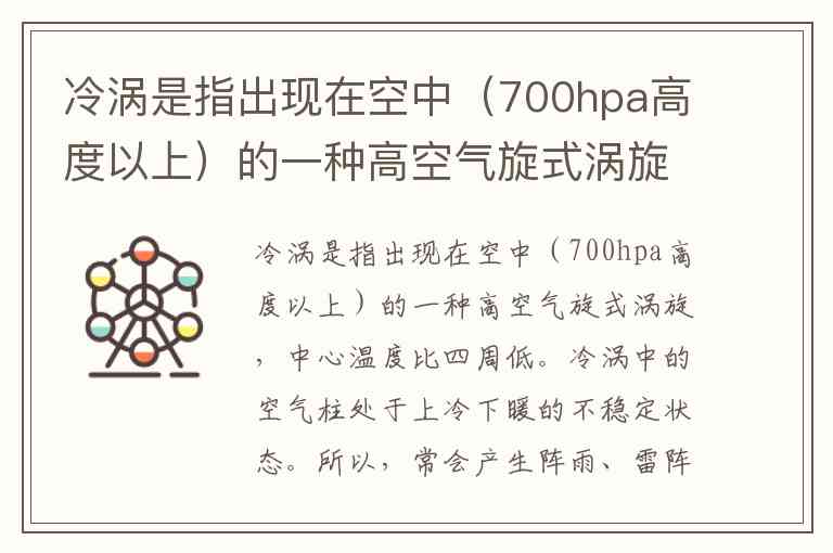 冷涡是高空气旋式涡旋,中心温度比四周低(即高空冷中心)。