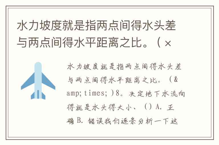 水力坡度的定义是水头差除以渗流路径的长度(沿流向的实际长度),而不是水平距离。如果水流方向不是水平的,那么水平距离会小于实际渗流距离,所以用水平距离算出的数值一般不等于水力坡度。因此这题打×是正确的。