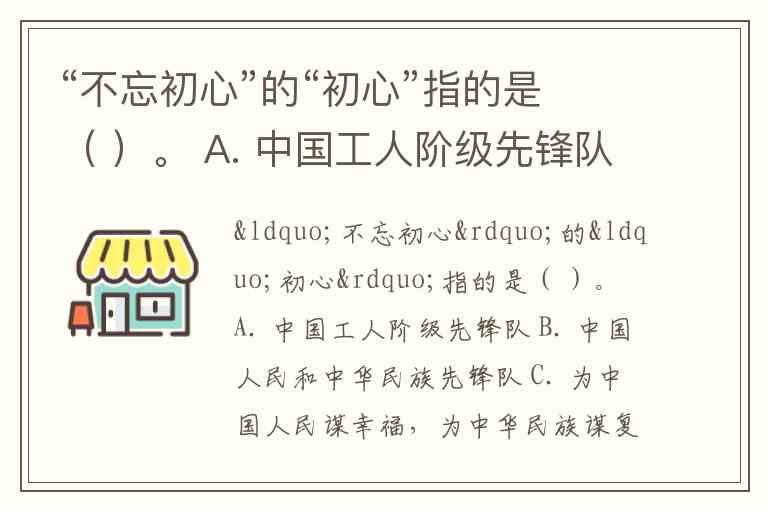 “不忘初心”的“初心”指的是( )。 A. 中国工人阶级先锋队 B. 中国人民和中华民族先锋队 C. 为中国人民谋幸福,为中华民族谋复兴 D. 全心全意为人民服务并不谋求自身的利益