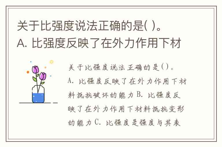 A:比强度并不是“抵抗破坏的能力”,这是强度的定义,而且没有强调单位质量因素,所以不准确。