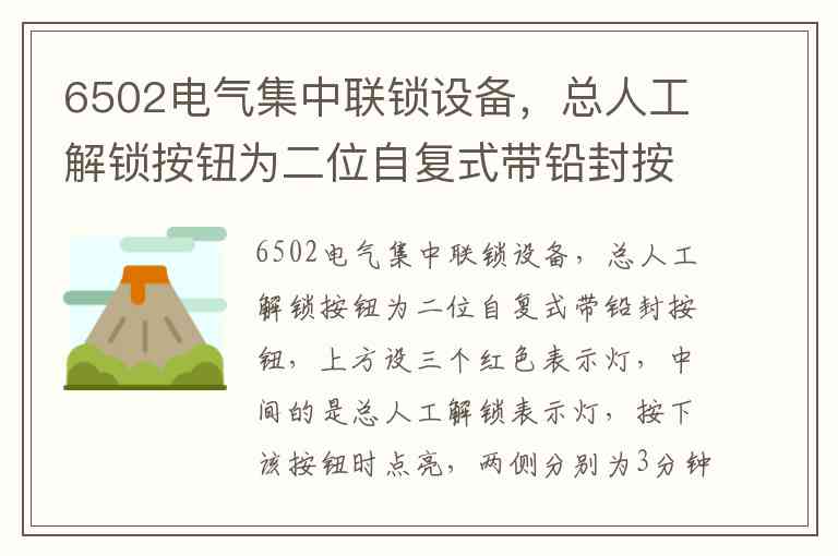 人工解锁 是指进路已经锁闭(通常是接近锁闭状态),但需要取消进路时,必须经过延时才能解锁,以保证安全。