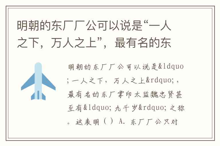 ❌ C. 东厂常用刑具有18套:虽然东厂以酷刑闻名,文献中也确实提到东厂有18种刑具,但这只是一个具体的事实描述,无法从题干中“一人之下,万人之上”和“九千岁”的地位描述中推导出来 -1。