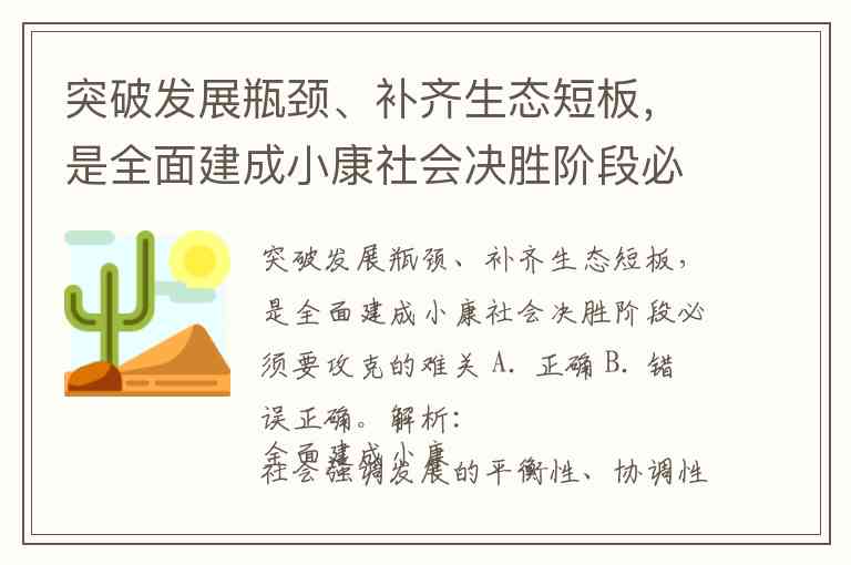 突破发展瓶颈、补齐生态短板,是全面建成小康社会决胜阶段必须要攻克的难关 A. 正确 B. 错误