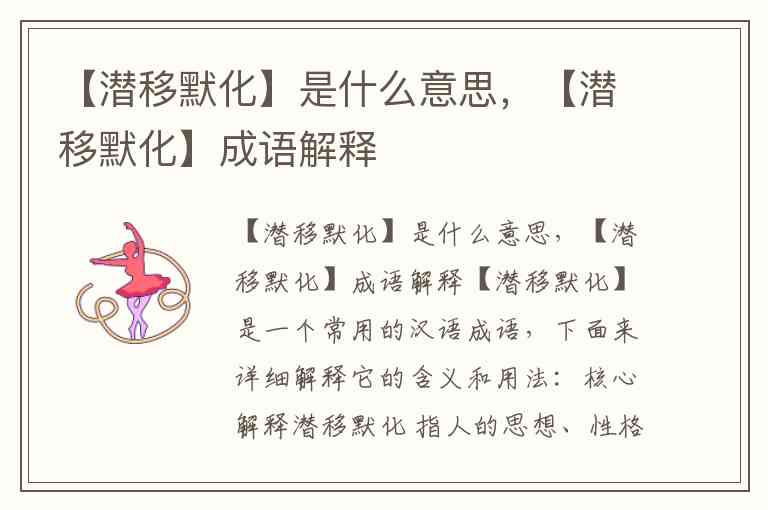 【潜移默化】是一个常用的汉语成语,下面来详细解释它的含义和用法: