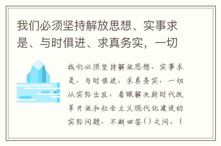 我们必须坚持解放思想、实事求是、与时俱进、求真务实,一切从实际出发,着眼解决新时代改革开放和社会主义现代化建设的实际问题,不断回答中国之问、世界之问、人民之问、时代之问,作出符合中国实际和时代要求的正确回答,得出符合客观规律的科学认识,形成与时俱进的理论成果,更好指导中国实践。