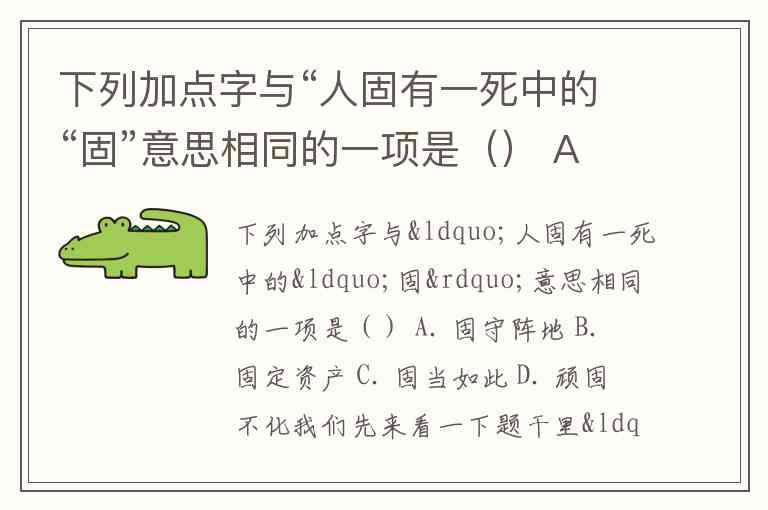 下列加点字与“人固有一死中的“固”意思相同的一项是() A. 固守阵地 B. 固定资产 C. 固当如此 D. 顽固不化