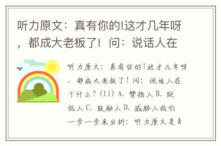 听力原文是 “真有你的! 这才几年呀,都成大老板了!”