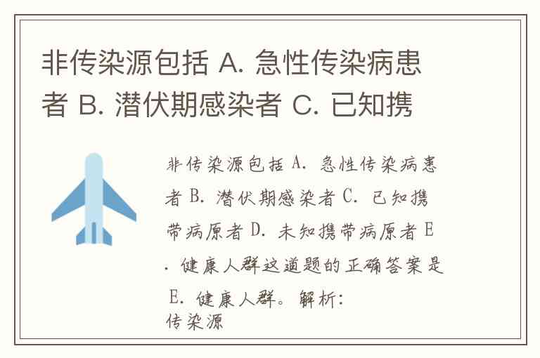 非传染源包括 A. 急性传染病患者 B. 潜伏期感染者 C. 已知携带病原者 D. 未知携带病原者 E. 健康人群