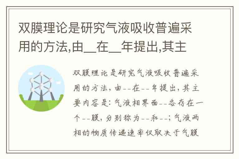 双膜理论(双膜模型)是研究气液吸收过程最经典的传质理论。针对你提出的填空题,正确答案如下: