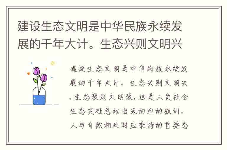 建设生态文明是中华民族永续发展的千年大计。生态兴则文明兴,生态衰则文明衰,这是人类社会生态灾难总结出来的血的教训。人与自然相处时应秉持的首要态度是() A. 人与自然和谐共生 B. 顺应自然 C. 尊重自然 D. 保护自然