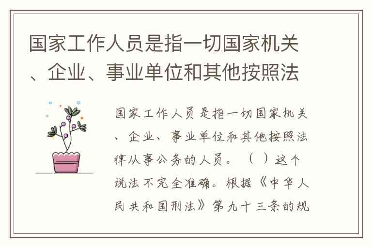 国家工作人员是指一切国家机关、企业、事业单位和其他按照法律从事公务的人员。 ( )