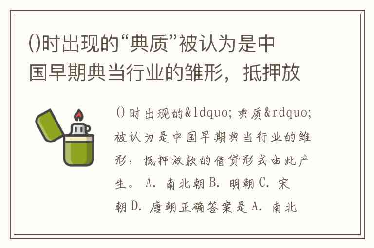 ()时出现的“典质”被认为是中国早期典当行业的雏形,抵押放款的借贷形式由此产生。 A. 南北朝 B. 明朝 C. 宋朝 D. 唐朝