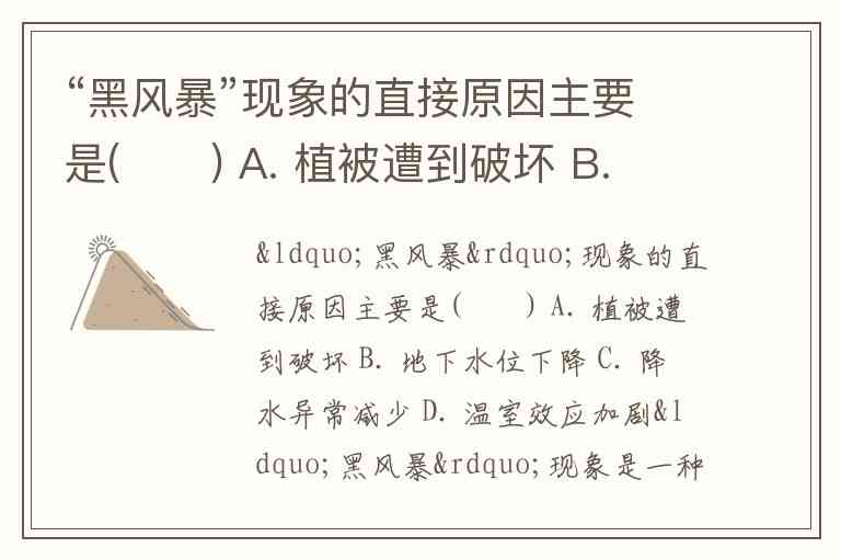 “黑风暴”现象的直接原因主要是( ) A. 植被遭到破坏 B. 地下水位下降 C. 降水异常减少 D. 温室效应加剧