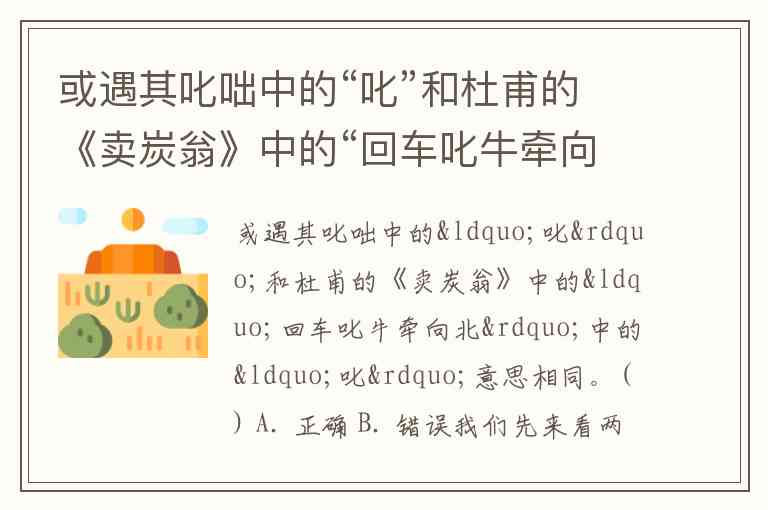 或遇其叱咄中的“叱”和杜甫的《卖炭翁》中的“回车叱牛牵向北”中的“叱”意思相同。( ) A. 正确 B. 错误
