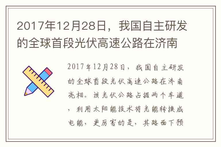 A. 成本高 —— 光伏公路集成了光伏发电、电磁感应无线充电、路面材料特殊设计、融雪系统等,技术复杂,造价远高于普通公路,而发电效率又不如集中式光伏电站,经济性差,这是现实中最主要的限制因素。