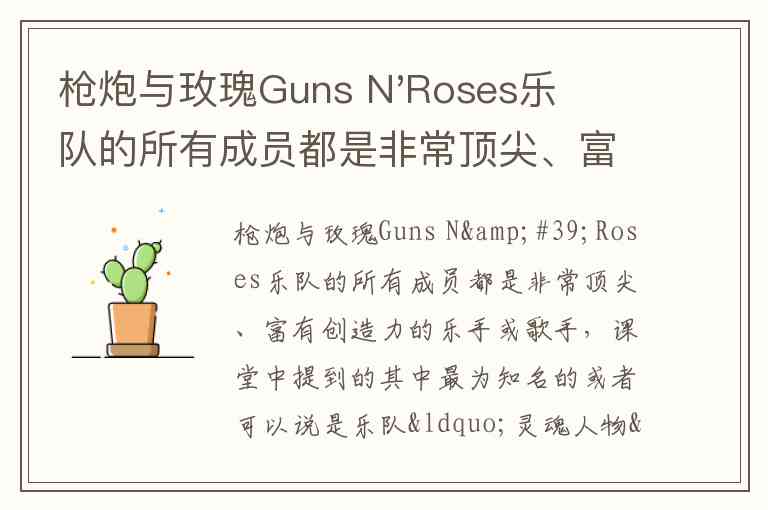 枪炮与玫瑰乐队最为知名的灵魂人物通常是主唱 Axl Rose 和主音吉他手 Slash。