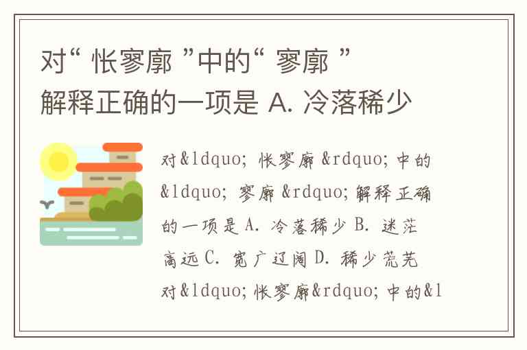对“ 怅寥廓 ”中的“ 寥廓 ”解释正确的一项是 A. 冷落稀少 B. 迷茫高远 C. 宽广辽阔 D. 稀少荒芜