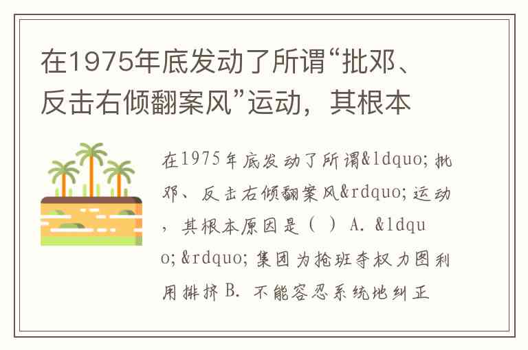 在1975年底发动了所谓“批邓、反击右倾翻案风”运动,其根本原因是( ) A. “”集团为抢班夺权力图利用排挤 B. 不能容忍系统地纠正“”的错误 C. 力图团结老干部反击“”集团 D. 认为的整顿最终会导致为党内走资派翻案