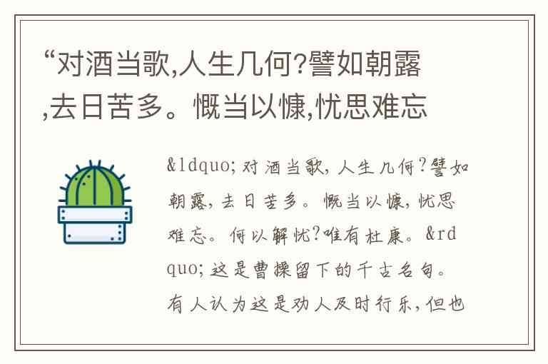 “人生几何”“譬如朝露,去日苦多” → 感叹人生短暂,容易解读为劝人及时行乐。