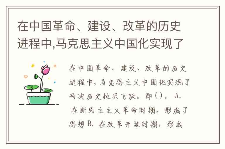 在中国革命、建设、改革的历史进程中,马克思主义中国化实现了两次历史性飞跃。