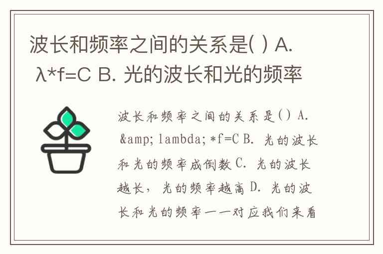 波长和频率之间的关系是( ) A. λ*f=C B. 光的波长和光的频率成倒数 C. 光的波长越长,光的频率越高 D. 光的波长和光的频率一一对应