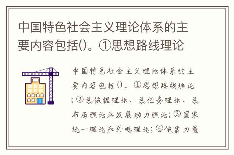 中国特色社会主义理论体系的主要内容包括()。①思想路线理论;②总依据理论、总任务理论、总布局理论和发展动力理论;③国家统一理论和外略理论;④依靠力量理论和领导核心理论。 A. ①②④ B. ①②③ C. ①②③④ D. ①③④